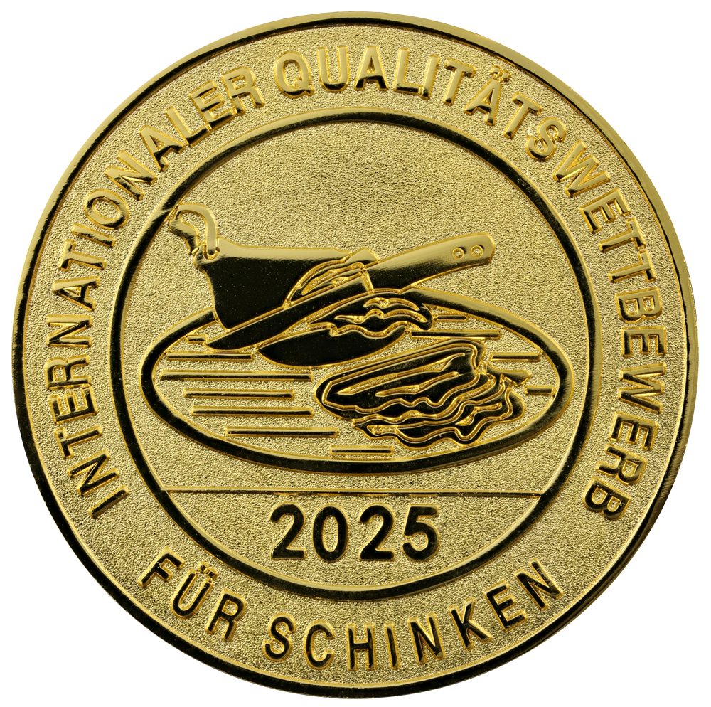 Auf der IFFA 2025, der weltgrössten Fleischerei Fachmesse wurde unser Schinkenspeck mit der Gold ausgezeichnet.